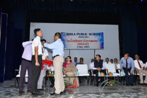 पिलानी कै पी रूथला बिरला पब्लिक स्कूल पिलानी में आज प्रातः 8:30 बजे विजय सभागार में छात्रों का अलंकरण समारोह संपन्न हुआ । समारोह के मुख्य अतिथि मेजर जनरल एस एस नायर , अति विशिष्ट सेवा मेडल, निर्देशक, बिरला एजुकेशन ट्रस्ट पिलानी थे, विशिष्ट अतिथि श्री माधव गुप्ता, पूर्व छात्र बिरला पब्लिक स्कूल पिलानी , नवचयनित प्रशासनिक सेवा लोकसेवा आयोग थे । विद्यालय के प्रार्थना गायन से समारोह का शुभारंभ हुआ । श्लकोचारण के बाद विद्यालय की प्राचार्या श्रीमती काजल मारवाह ने पुष्प गुच्छ भेंट कर मुख्य अतिथि और विशिष्ट अतिथि का स्वागत किया एंव अन्य सम्मानित अतिथियों श्री पवन वशिष्ठ , प्राचार्य बिरला शिशु विहार, श्री धीरेंद्र सिंह , प्राचार्य , बिरला स्कूल पिलानी का भी पुष्प कुछ भेंट कर स्वागत किया गया । तदुपरांत नव चयनित स्कूल कैप्टन मास्टर अविचल सिंह रावत को मुख्य अतिथि महोदय ने स्कूल कैप्टन के पद से अलंकृत किया , तत्पश्चात श्रीमती काजल मारवाह ने स्कूल वाइस कैप्टन प्रथमेश कुमार को पद से अलंकृत किया, इसके बाद श्री पवन वशिष्ठ, प्राचार्य बिरला शिशु विहार ने गेम्स कैप्टन हरसहज सिंह धालीवाल को पद अलंकृत किया, फिर श्री धीरेंद्र सिंह, प्राचार्य बिरला स्कूल पिलानी ने एकेडमिक प्रिफेक्ट अविसाही को पद अलंकृत किया, वॉइस स्पोर्ट्स कैप्टन हरिओम राय को हेड मास्टर, श्री सुशांत कुमार बराल ने पद अलंकृत किया, मेस प्रिफेक्ट यशवर्धन पांडे को बर्सर, श्री महेश चंद पांडे ने पद अलंकृत किया , वॉइस मैस प्रिफेक्ट आकृत अग्रवाल को हेडमिस्ट्रेस जूनियर सेक्शन, श्रीमती मीनाक्षी गौड ने पद अलंकृत किया , डे स्कॉलर प्रिफेक्ट अतुल्य गुप्ता को विद्यालय के डीओपीसी सदानंद त्यागी ने पदलंकृत किया, इवेंट मैनेजमेंट प्रिफेक्ट शब्द बरार को श्री सर्वेश कुमार जी ने पद अलंकृत किया । इसके बाद सभी सदनो के स्कूल प्रिफेक्ट और हाउस प्रिफेक्ट को तत्संबंधित हाउस मास्टर और असिस्टेंट हाउस मास्टर्स ने पद अलंकृत किया। विद्यालय के प्राचार्या श्रीमती काजल मारवाह ने विद्यालय का स्मृति चिन्ह भेटकर मुख्य अतिथि और विशिष्ट अतिथि को सम्मानित किया । और मुख्य अतिथि महोदय ने विशिष्ट अतिथि का शाल पहनाकर सम्मान किया । तत्पश्चात मुख्य अतिथि महोदय ने छात्रों को पद की गरिमा बनाए रखने और अपने दायित्व का निर्वहन करने के लिए शपथ ग्रहण करवाई । मुख्य अतिथि महोदय ने अपने उद्बोधन में छात्रों को विद्यालय के सभी नियमों का पालन करते हुए, अपने पदों के कर्तव्य का निर्वहन करने का संदेश दिया । विशिष्ट अतिथि ने छात्रों को प्रोत्साहित करते हुए बताया कि उन्होंने अपने लोक सेवा आयोग की प्रशासनिक सेवाओं की तैयारी किस प्रकार की । तथा छात्रों को भी भविष्य में किस तरह अप