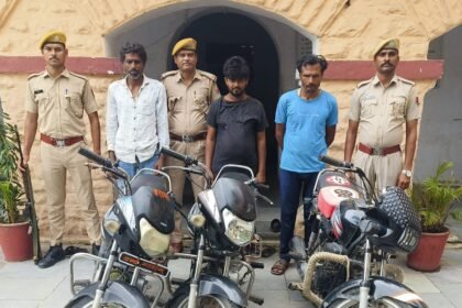 चोरी की मोटर साईकिल खरीदने वाले सरगना सहित तीन आरोपी गिरफ्तार, तीन मोटर साईकिले बरामद।