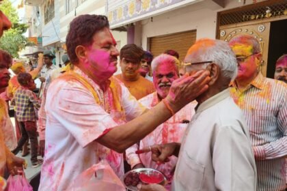 नगर क्षेत्र के मुख्य बाजारों में पहुंचकर नगर वासियों के गुलाल लगाकर…