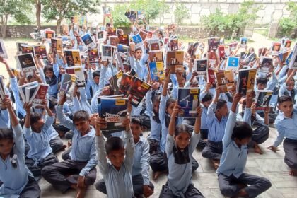 नया सानवाड़ा स्कूल में भामाशाह ने बांटी शिक्षण सामग्री -कक्षा पहली से आठवीं तक के विद्यार्थियों को बांटी
