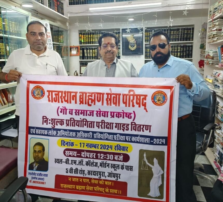 जोधपुर। राजस्थान ब्राह्मण सेवा परिषद गौ व समाज सेवा प्रकोष्ठ की ओर से अध्यक्ष एडवोकेट संजीव व्यास ने बताया की प्रकोष्ठ की ओर से जोधपुर में दिनांक 17 नवंबर को…